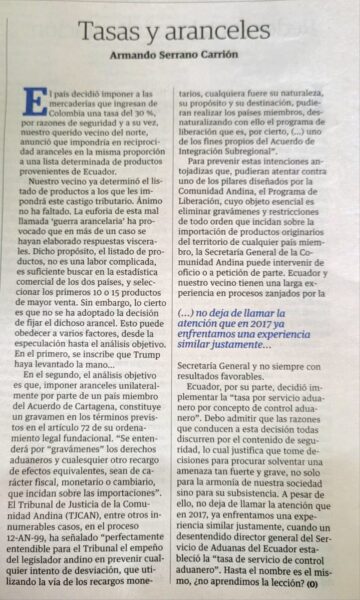 El país decidió imponer a las mercaderías que ingresan de Colombia una tasa del 30…